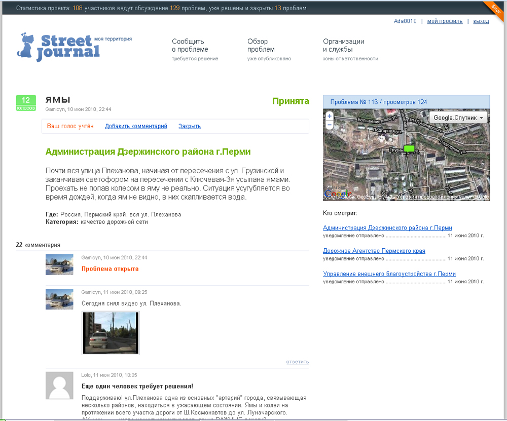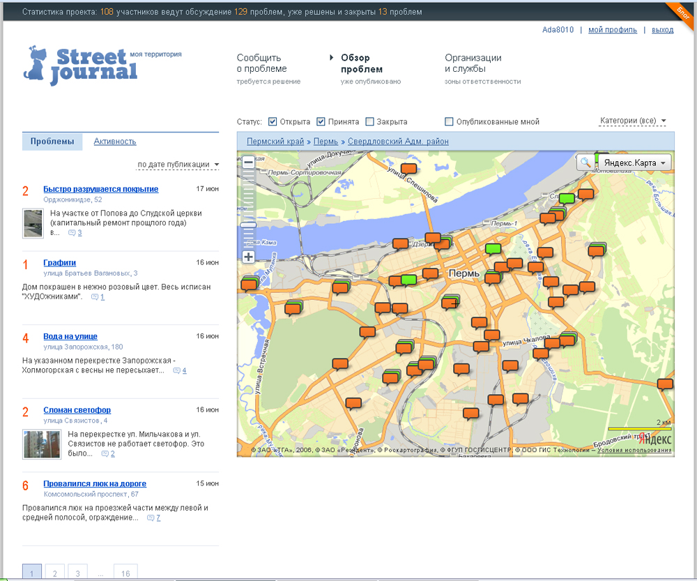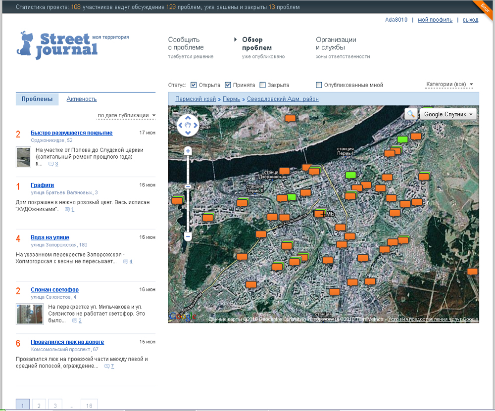 в городской среде. Жители обозначают проблемные места прямо на карте своего города, района - ответственные организации